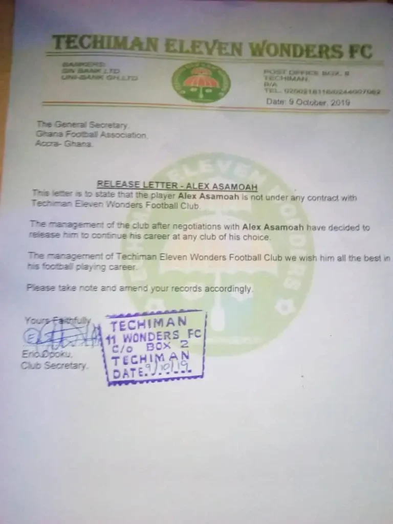 Techiman XI Wonders, a Ghana Premier League club, announced on Wednesday, October 9, 2019, that they have mutually agreed to part ways with veteran striker Alex Asamoah.
